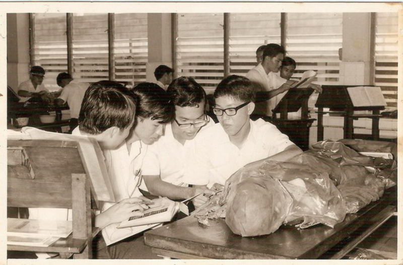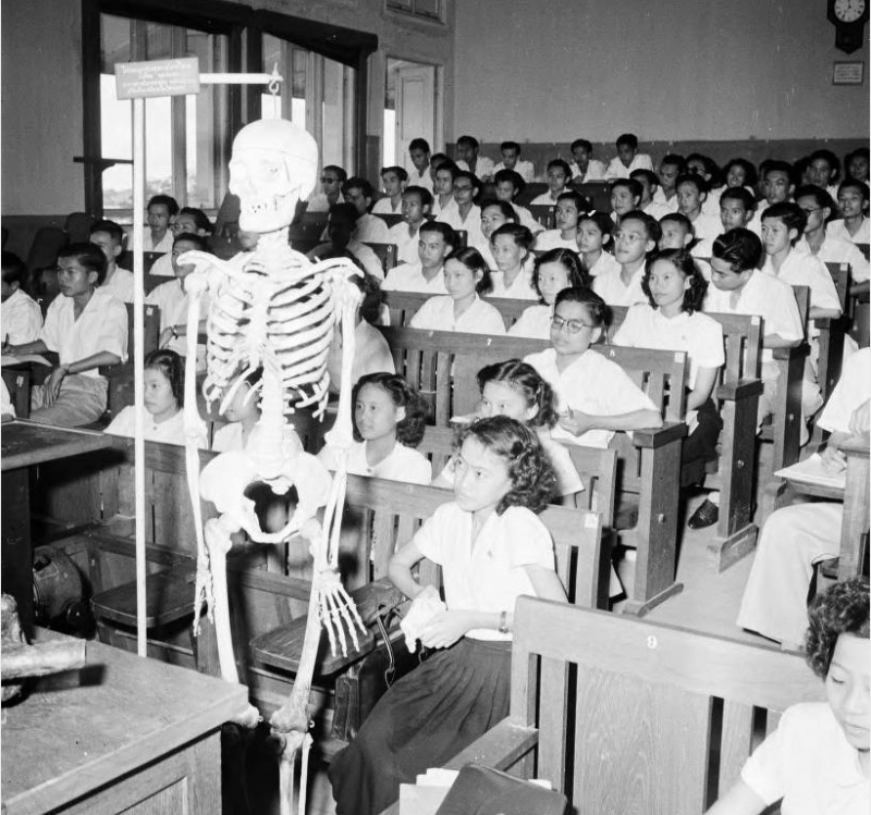 เป็นแพทย์ศิริราช (รูปในห้องแลปอนาโตมี่ ทั้งโต๊ะและสแตนด์ที่วางตำราเหมือนที่จุฬา