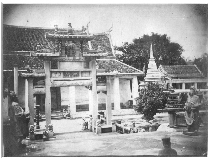 ภาพที่สอง ถ่ายหลังจากภาพแรกสี่ปี เป็นของ จอห์น ทอมสัน เห็นเจดีย์ประจำรัชกาลที่ สี่กำลังก่อสร้าง  ภูมิสถานหน้าวัดก็เปลี่ยนไปมาก
