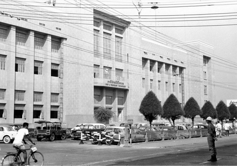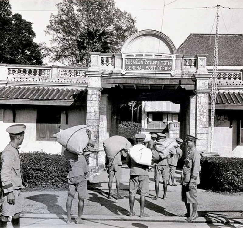 ไปรษณีย์ไทยสมัยที่ยังอาศัยอาคารสถานทูตอังกฤษเก่าที่ถนนเจริญกรุง ภาพนี้มีอายุประมาณ ปี 2470 ถึง 2482 ไม่แน่ใจว่าเป็นด้านข้าง,ด้านหลังหรือด้านหน้า เพราะด้านหน้าห่างจากถนนเจริญกรุงมาก มีวงเวียนอยู่ด้านหน้าอาคาร เคยมีรูปเก่าถ่ายด้านหน้าในเรือนไทย ผมหาไม่เจอ ตัวอาคารเป็นอย่างในรูปที่สองที่สาม อ่านเรื่องไปรษณีย์ไทยที่นี่ http://www.bloggang.com/viewblog.php?id=yyswim&date=06-03-2008&group=3&gblog=164