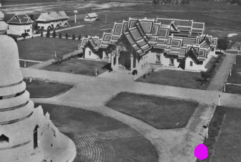 มีคำบรรยายสั้นๆ ว่า วัดพระศรีมหาธาตุบางเขน กรุงเทพ เมื่อปีพ.ศ.2485