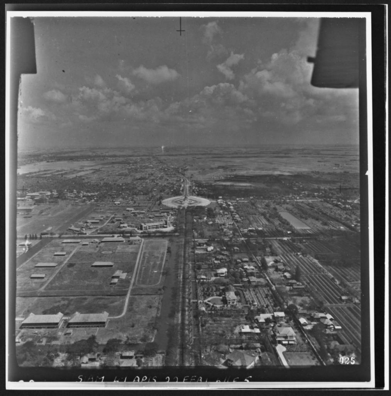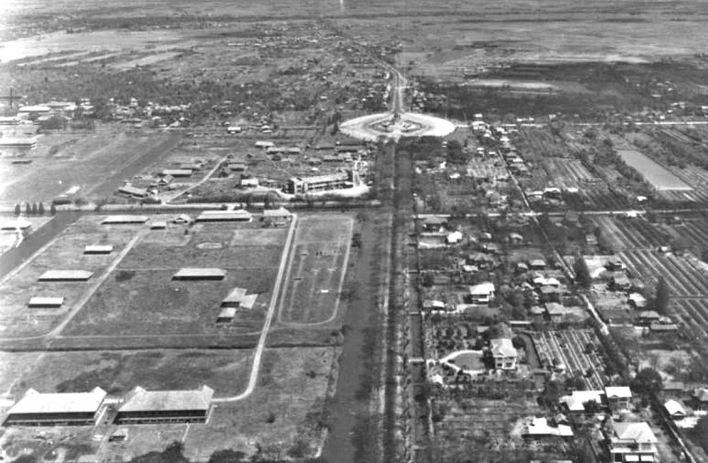 ต้นทศวรรษ 2490 บริเวณอนุสาวรีย์ชัยสมรภูมิยังเป็นชนบทอยู่มากๆ แทบมองไม่เห็นรถยนต์บนถนน