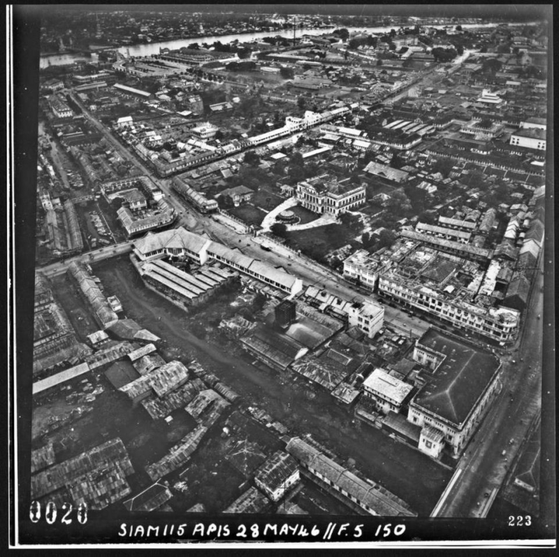 ขอร่วมเป็นส่วนหนึ่งของกระทู้นี้อีกคนนะคะ  รูปนี้ได้มาจากฝรั่งอเมริกันคนหนึ่งที่เคยมาเป็นทหารสมัยสงครามเวียดนาม คิดว่าน่าจะถ่ายไว้ประมาณปี พ.ศ. 2509-2511 ค่ะ ลองค้นๆ ดูในกูเกิ้ลก็พบว่าเป็นรูปของตึกบริษัท East Asiatic  รูปปัจจุบัน ที่มา http://www.oknation.net/blog/tourrattanakosin/2011/07/14/entry-2