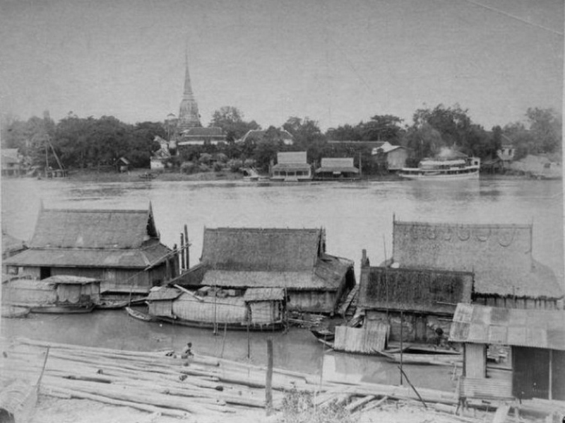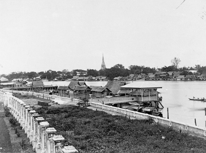 จากมุมมองท่านํ้าโรงเรียนราชินี ไปที่วัดประยุรวงศาวาส ปี 2446