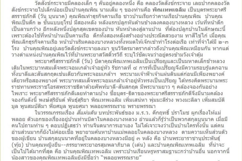 คุณ วราห์ โรจนวิภาต เขียนบทความ ยํ้ารอยอดีตคลองบางหลวง 1 เล่าเรื่องของนายพิณเทพเฉลิม ไว้อย่างนี้