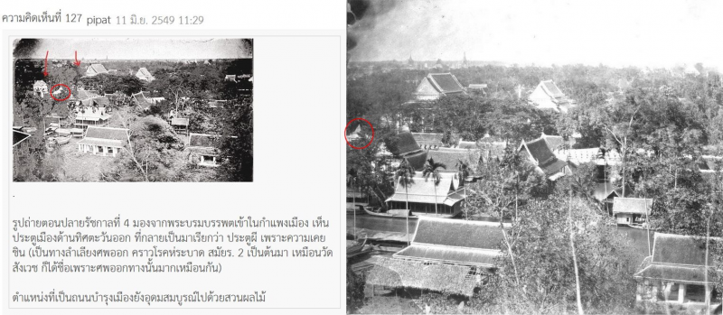 มีรูปแสดงประตูผีของอาจารย์พิพัฒน์ ที่ผมสงสัย ภาพซ้ายเป็นคำอธิบายของอาจารย์ ภาพขวาเป็นภาพที่ผมพอจะหามาเปรียบได้แต่มุมไม่กว้างเท่าของภาพอาจารย์ ภาพขวาไปสุดที่ประตูช่องกุด วงไว้เพื่อ เทียบกับภาพซ้าย พ้นวงกลมแดงแล้วเป็นประตูผีตามภาพซ้าย