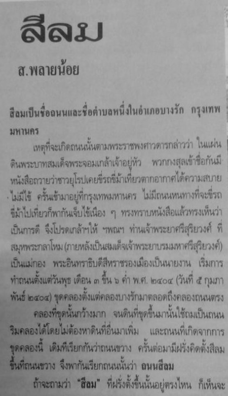 ไปที่เรื่องถนนสีลมต่อ เรื่องนี้ยังมีรายละเอียดอีกยาว