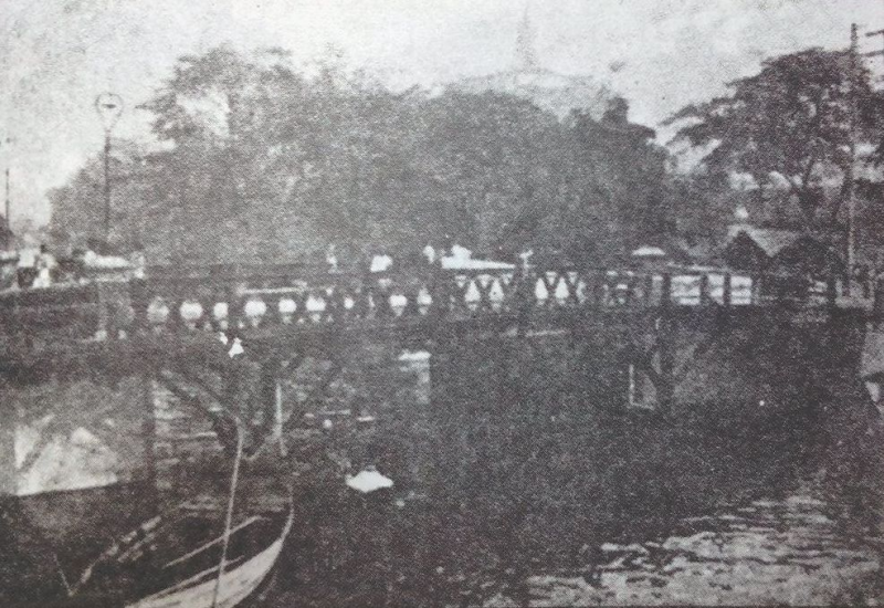 ล่าง  สะพานสมมตฯ เดิมในสมัยรัชกาลที่ ๕ เสาเป็นไม้ ราวสะพานเป็นไม้