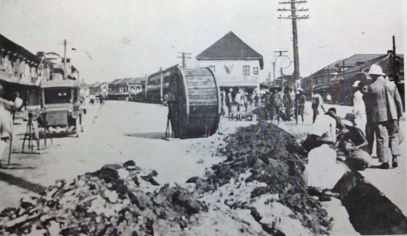 เตรียมไม่ทันวันนี้ ภาพเดียว สามแยก ไม่ทราบเวลาที่ถ่ายภาพนี้ ยังไม่มีรถราง อาจจะเป็นการวางระบบไฟฟ้าให้รถราง?