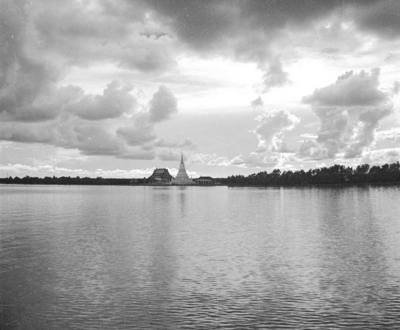 พระสมุทรเจดีย์ ภาพแรก พศ ๒๔๒๕ ภาพที่สอง มาจากหนังสือของโฟเนโร(พศ ๒๔๓๗) ภาพที่สาม เป็นภาพถ่ายของเพนเดิลตัน พศ ๒๔๗๘ น่าจะเชื่อมต่อกับฝั่งแล้ว ไม่เป็นเกาะลอยอีกต่อไป ภาพที่สี่ ปี พศ ๒๔๓๗ เป็นต้นแบบภาพวาดที่สอง
