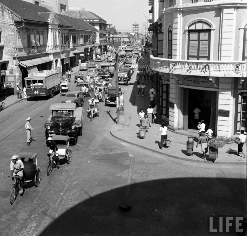 ภาพถนนเจริญกรุงต่ออีกสี่ภาพ เป็น ปี ๒๔๙๓ รถหนาแน่นวิ่งกันเต็มถนน