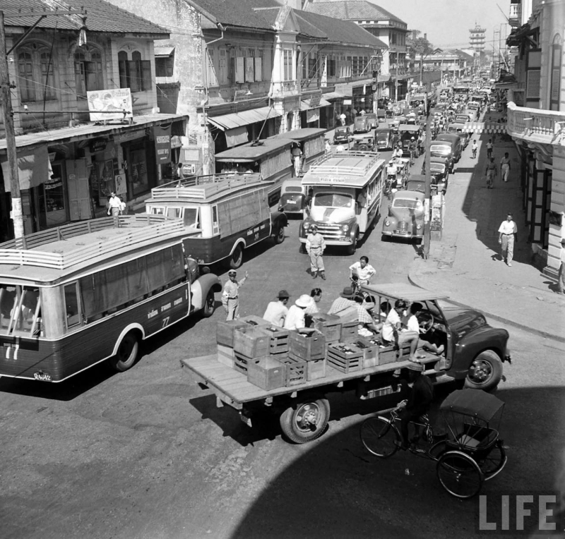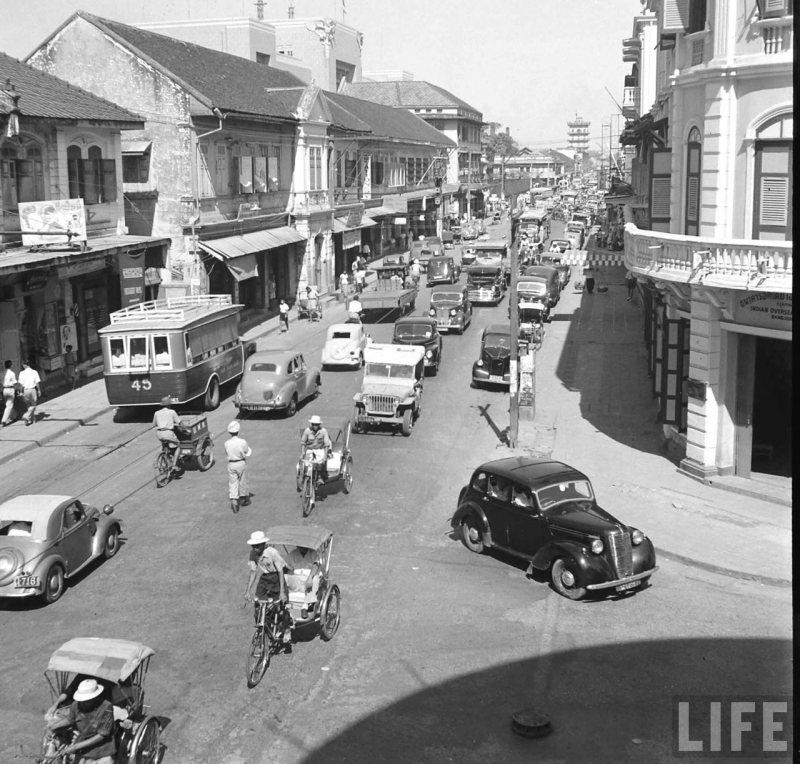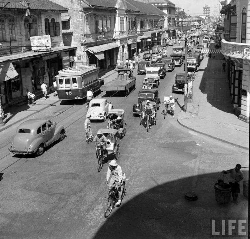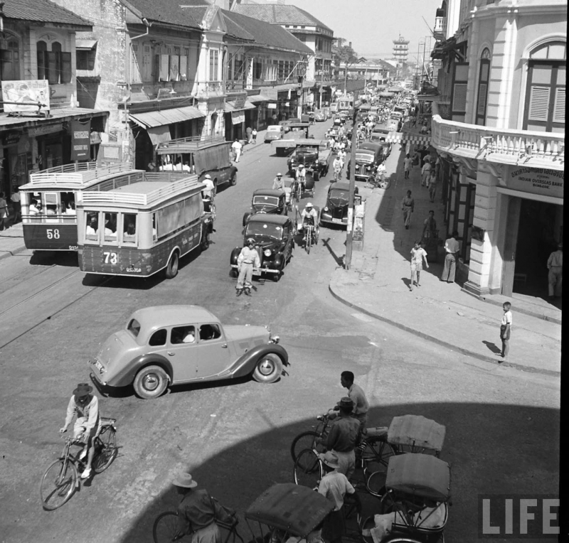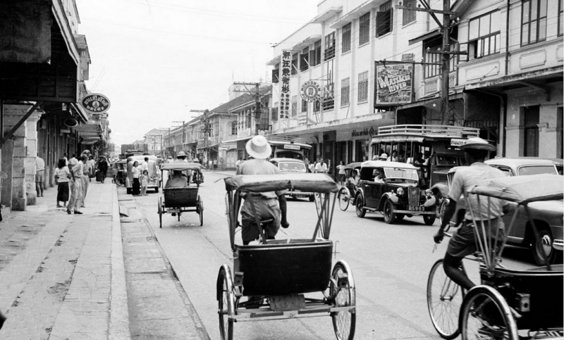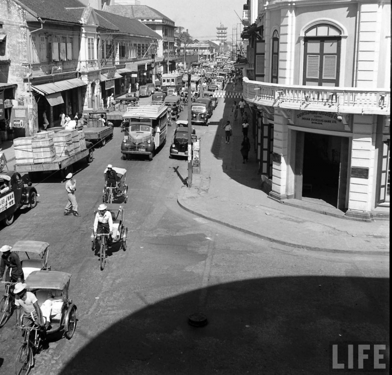 ภาพถนนเจริญกรุงต่ออีกสี่ภาพ เป็น ปี ๒๔๙๓ รถหนาแน่นวิ่งกันเต็มถนน