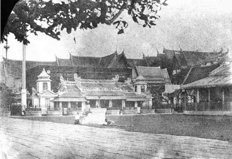 ภาพวัดในกรุงเทพ เป็นภาพสะสมของนาย Galileo Chini อุโบสถหลังเล็กๆที่ทรุดโทรม ลักษณะเรียบง่ายไม่มีลวดลายประดับ หน้าบันไม่มีลายใดๆ มีเจดีย์ย่อมุมไม้สิบสองที่สวยงาม ประดับลวดลายเต็มที่ คงจะถ่ายในราว พศ 2454-2456