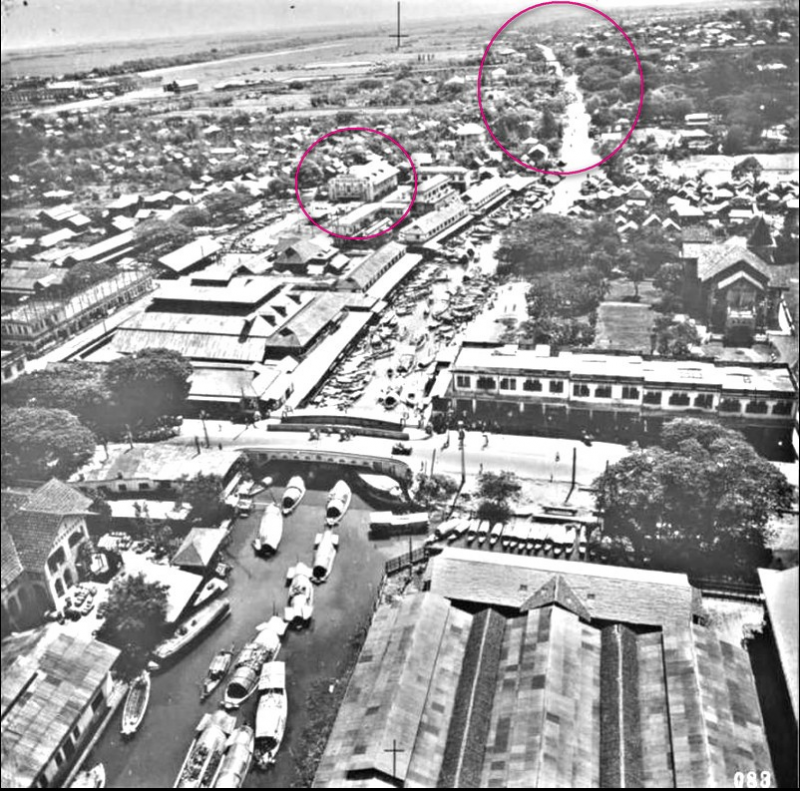 จากภาพประตูนํ้า คลองแสนแสบ เมื่อเอามาขยายจะเห็นรายละเอียดเพิ่ม จะเห็นโรงหนังศาลาเฉลิมโลก ที่อยู่ในแนวถนนเพชรบุรีตัดใหม่ ที่จะตัดเพิ่มในเวลาต่อมา อีกภาพจะเป็นทางรถไฟสายแม่นํ้า ที่เชื่อมระหว่าสถานีมักกะสันกับคลองเตย คลังนํ้ามันช่องนนทรี โรงกลั่นบางจาก เป็นเส้นทางรถไฟขนสินค้า แต่ให้มีผู้โดยสารบ้าง(จากเวปรถไฟไทย)
