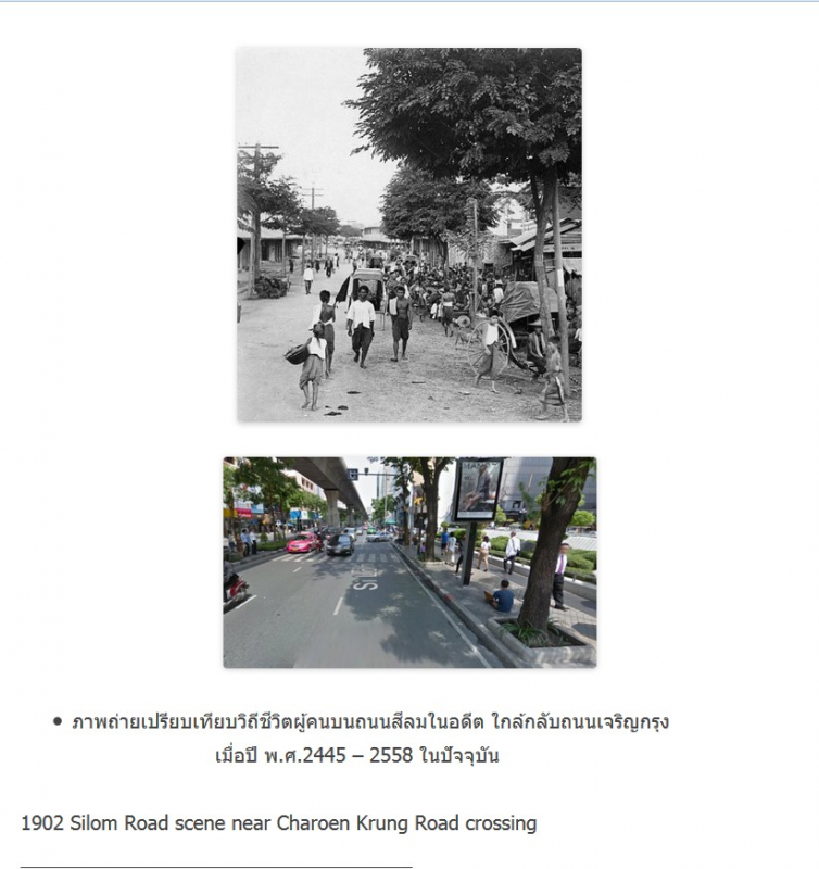 มีภาพเก่าที่มีคำบรรยายไว้ว่า "1902-silom-road-scene-near-charoen-krung-crossing-bkk" หมายความว่าเป็นภาพถนนสีลมที่ไปออกถนนเจริญกรุง อย่างที่ผมเรียกว่า สามแยกบางรัก