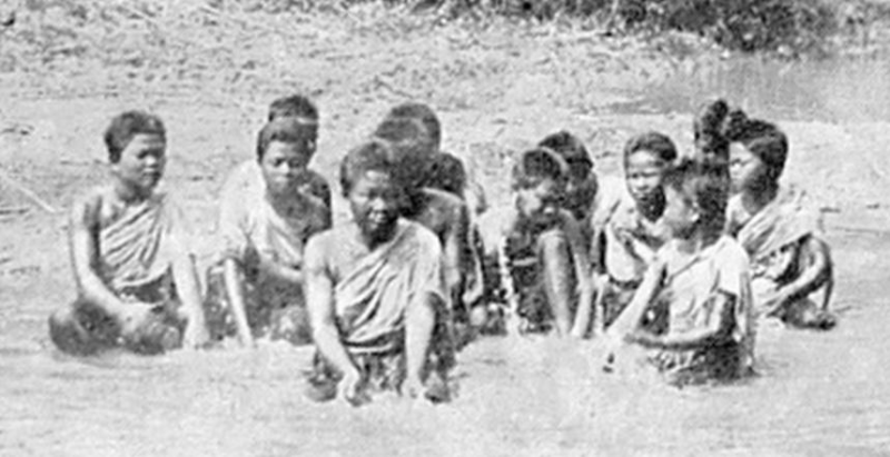 สงสัยอยู่ครามครันว่า แม่หญิงชาวชนบทสมัยนั้นลงอาบน้ำในชุดผ้าซิ่นห่มสไบอย่างนั้นตามปกติวิสัยหรือว่าจัดฉาก น่าจะเป็นการจัดฉากครับ เพราะผิดวิสัยการเล่นน้ำต้องผลัดผ้าออก จะตีโป่งลอดผ้านุ่งคงไม่งาม