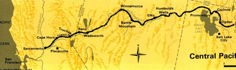 ในส่วนสายเริ่มต้นจากแคลิฟอร์เนียของบริษัท Central Pacific Railroad นั้น