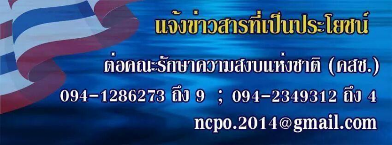 เราได้รับข้อมูลของท่านแล้ว ขอบคุณที่กรุณาแจ้งข้อมูลที่เป็นประโยชน์ คณะรักษาความสงบแห่งชาติ (คสช.)