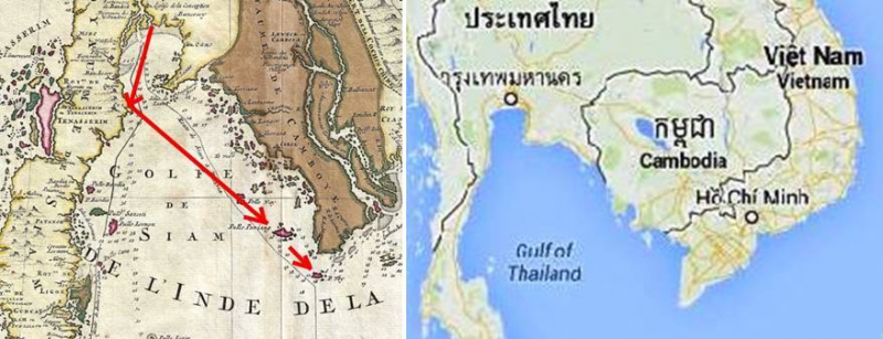 หยิบแผนที่สมัยพระนารายณ์มาให้ดูตำแหน่งของเกาะ Pulipanjang  กับ Puli Ubi