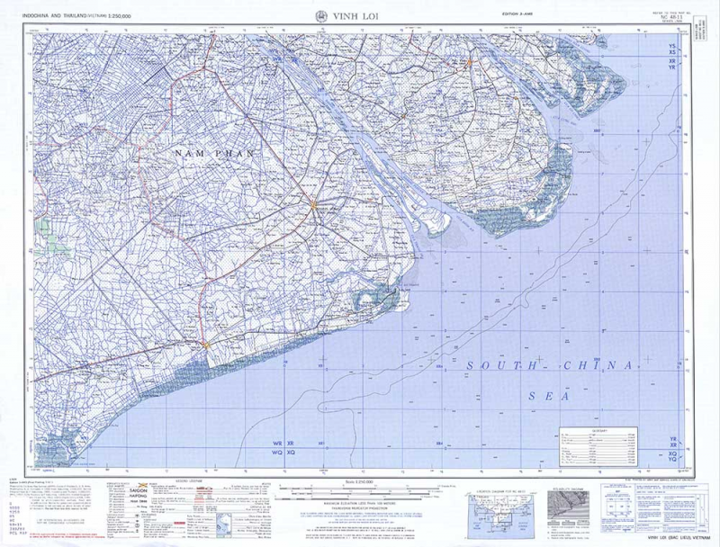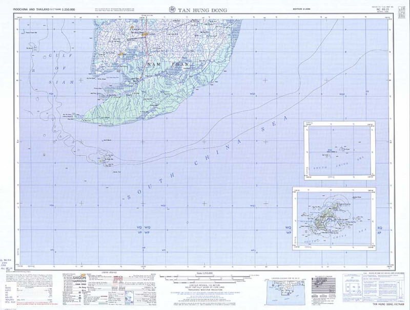 รูปบนคือตรงปลายแหลมญวน (มีแผนที่เล็กประกอบคือส่วนเกาะจึ๋งใหญ่-เล็ก กับเกาะโกนต๋าว ซึ่งไม่ได้อยู่ในตำแหน่งจริง อันที่จริงควรจะอยู่ออกไปทางตะวันออกในแผนที่ระวางถัดไป แต่เข้าใจว่านี่คือแผนที่ของทหารบก ซึ่งจะแสดงเฉพาะส่วนที่เป็นพื้นดิน จึงดึงเข้ามาใส่ระวางนี้เพื่อความประหยัดครับ) ส่วนรูปล่างคือแถวปากน้ำปาสัก แผนที่ต้นฉบับมีขนาดใหญ่มาก ท่านใดสนใจไป download ได้ที่นี่ครับ