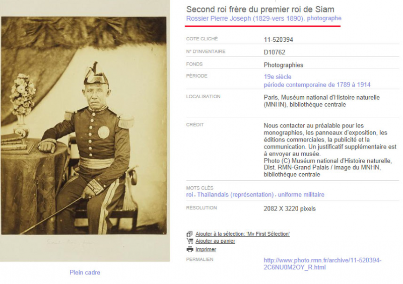ข้อมูลจากเวปไซด์ฝรั่งเศส ระบุว่าพระบวรฉายาลักษณ์นี้ ถ่ายโดยปีแอร์ โรซิเยท์ (เข้ามาสยาม เมื่อ พ.ศ. ๒๔๐๔)