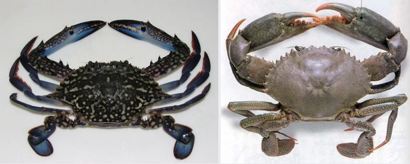 ซ้าย - ปูม้า  Portunus pelagicus  ขวา - ปูทะเล Scylla serrata