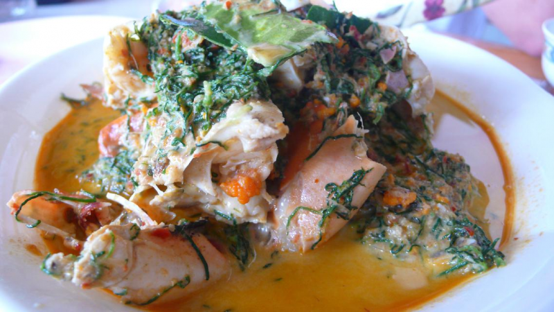 เมนูปูที่ได้ชิม คือ แกงกระหรี่ปู และปูราดพริก