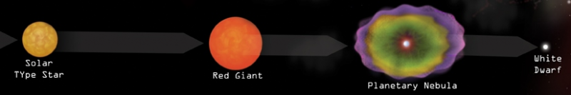 ที่เป็นขั้นตอนหนึ่งของวิวัฒนาการช่วงสุดท้ายของดาวฤกษ์มวลน้อย และมวลปานกลาง เมื่อปฏิกิริยาเทอร์โมนิวเคลียร์ในแกนกลางยุติลง ทำให้ดาวเสียสมดุลระหว่างแรงดันออกจาก ความร้อนกับแรงโน้มถ่วง แกนกลางดาวจะยุบตัวเข้าหาศูนย์กลางจากแรงโน้มถ่วง กลายเป็น ดาวแคระขาว ส่วนเปลือกภายนอกและเนื้อสารของดาวจะหลุดออก และขยายตัวไปในอวกาศ เป็น เนบิวลาดาวเคราะห์ซึ่งไร้พลังงาน แต่สว่างได้เนื่องจากได้รับพลังงานจากดาวแคระขาวที่ อยู่ภายใน เมื่อเวลาผ่านไปดาวแคระขาวจะเย็นตัวลง และเนบิวลาดาวเคราะห์ก็จะขยายตัวไปเรื่อยๆ จนจางไปในอวกาศ แม้จะเรียกว่าเนบิวลาดาวเคราะห์ แต่ก็ไม่ได้เกี่ยวข้องกับดาวเคราะห์ ชื่อนี้ได้มาจากลักษณะ ที่เป็นวงกลมขนาดเล็กแลคล้ายดาวเคราะห์เมื่อสังเกตจากกล้องโทรทรรศน์