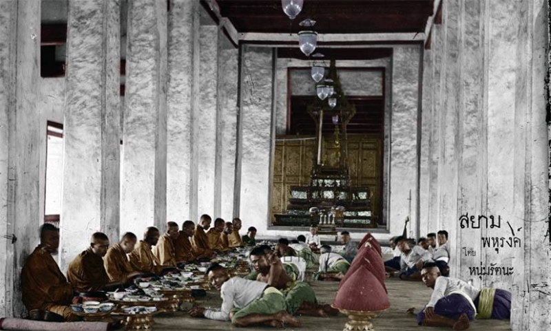 พระบาทสมเด็จพระจอมเกล้าฯทรงโปรดเกล้าฯให้พระราชโอรสผลัดกันมาเป็นองค์ประธานในการถวายอาหารแด่สงฆ์ซึ่งจัดเป็นประจำที่พระที่นั่งสุทไธสวรรค์ ซึ่งวันที่ทอมสันได้ไปถ่ายภาพที่นั่นเป็นเวรของพระองค์เจ้าทองแถมถวัลยวงศ์