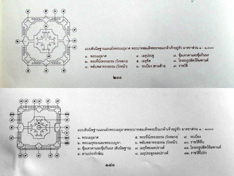ภาพบน จะเป็นแผนผังพระเมรุมาศพระจอมเกล้าเจ้าอยู่หัว ภาพล่าง จะเป็นแผนผังพระเมรุมาศพระปิ่นเกล้าเจ้าอยู่หัว
