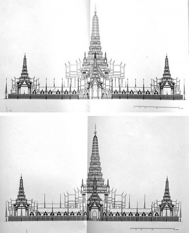 ผมได้บอกความต่างของพระเมรุให้ทางเจ้าของสำนักพิมพ์ไปเมื่ออาทิตย์ก่อนแล้ว ซึ่งการสังเกตุพระเมรุระดับกษัตริย์มีหลักดูง่ายนิดเดียว ก็จะพบความต่างกัน