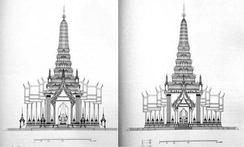 มาดูภาพแรก เปรียบเทียบพระปรางค์ของพระเมรุประธาน