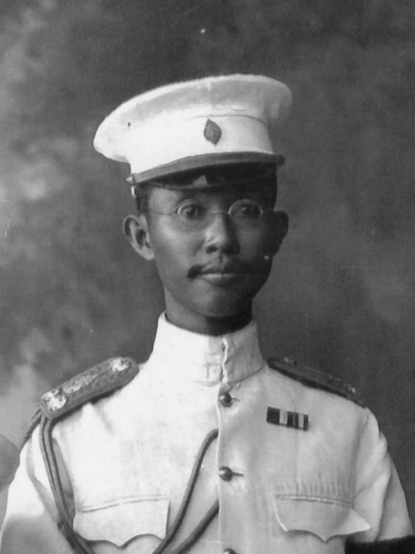 พระบาทสมเด็จพระมงกุฎเกล้าเจ้าอยู่หัว เมื่อทรงเป็นนายร้อยโท สมเด็จพระบรมโอรสาธิราชฯ นายทหารพิเศษประจำกรมทหารราบที่ ๑ มหาดเล็กรักษาพระองค์ครั้งประทับทรงศึกษาที่ประเทศอังกฤษ ทรงเครื่องเต็มยศเทา ฉลองพระองค์ทูนิคสีเทา พระสนับเพลาสีน้ำเงินแก่แบบขี่ม้า