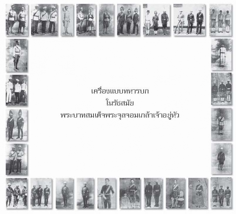 เครื่องแบบทหารบกเริ่มมีใช้เป็นครั้งแรกในตอนต้นรัชกาลที่ ๕ ที่กรมทหารราบที่ ๑ มหาดเล็กรักษาพระองค์ก่อนครับ แล้วจึงมีวิวัฒนาการเปลี่ยนแปลงมาเรื่อย แล้วจึงขยายไปใช้ยังกรมกองทหารต่างๆ มาว่ากันถึงเครื่องแบบหลักๆ ของกองทัพบกในสมัยรัชกาลที่ ๕ ก่อนเลยครับ หมวก - มีหมวก ๓ แบบ แบบที่ ๑ นายพันนายร้อยเป็นหมวกเฮลเม็ตทรงสูงแบบอังกฤษ เหมือนหมวกทหารตำรวจอังกฤษ แต่เปลี่ยนเป็นสีขาว มียอดหมวกเครื่องทองรูปแบบแตกต่างกันตามสังกัด กรมทหารราบที่ ๑ ยอดหมวกเป็นปทุมทรงสูง เหล่าปืนใหญ่เป็นลูกกรมคล้ายลูกปืนใหญ่ เหล่าอื่นเป็นยอดปทุมแบบเตี้ย ตราหน้าหมวกเป็นโลหะสีทองรูปลักษณะต่างกันไปตามเหล่า เช่น กรมทหารราบที่ ๑ ตราหน้าหมวกเป็นตราราชวัลลภ กรมทหารปืนใหญ่เป็นตราอาร์มแผ่นดินเหนือรูปปืนใหญ่ กรมทหารอื่นๆ เป็นตราแผ่นดินบ้าง ตรากรมยุทธนาธิการ (คล้ายตราอาร์มแผ่นดิน) บ้าง มีสายรัดคางคาดเป็นโลหะสีทอง เวลาที่ไม่รัดคางใช้คาดทับบนตัวหมวก ชั้นนายพลเหมือนนายพันนายร้อย แต่เพิ่มพู่ขนนกขาวที่ยอดหมวกในเวลาแต่งเต็มยศครึ่งยศ แบบที่ ๒ หมวกแก็ปทรงหม้อตาลสีเทา (แบบทหารอังกฤษ) กระบังหน้าสายรัดคางหนังดำ ติดตราปทุมอุณาโลม (รูปอุณาโลมในกรอบรูปปทุม) ที่หน้าหมวก แบบที่ ๓ หมวกกันแดดเป็นหมวกเฮลเม็ตสีเทา ไม่มัมียอดไม่มีตรา ไม่สายรัดคาง