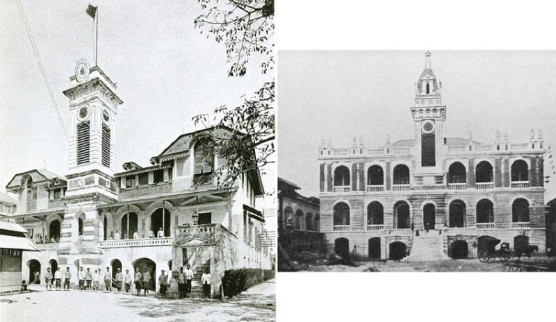 ภาพซ้ายมือเป็นอาคารบ้านเดิมก่อนที่จะถูกปรับปรุงเป็นภาพขวามือ จะเห็นว่ามีการดัดแปลงรูปแบบหลังคาและโครงสร้างช่วงบน ตลอดจนสร้างโดมขี้น