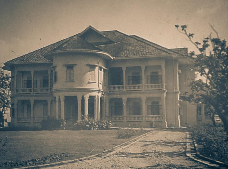 This was the house where my grandparents lived with my mother and her sister in Bangkok in 1946-49 when my grandfather was the United States Military Attache to Siam and Burma. The house was still there when we visited Bangok in 1991. It was destroyed in the mid 2000s for the Rajanakarn Tower, a high-rise office building. While they were in residence, S.J Perelman, Al Hirschfeld, Jim Thompson and others came to visit.