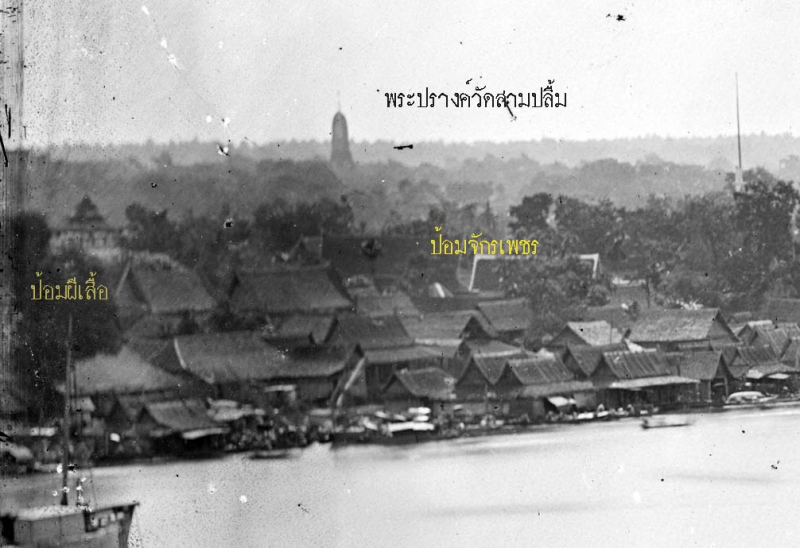 ป้อมที่เห็นคือป้อมผีเสื้อและป้อมจักรเพขร และยอดพระปรางค์ที่เห็นคือ ยอดพระปรางค์วัดสามปลื้มที่ตั้งอยู่บริเวณสำเพ็งครับ