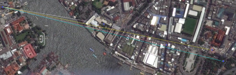 มิหนำซ้ำ  เส้นโยงของ "เสาธงป้อมผีเสื้อ" ยังโยงไปวัตถุคนละตำแหน่ง  คือว่า