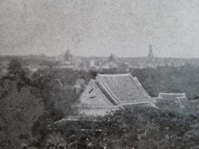 นี่ผมครอบมาจากภาพที่ผมมีอยู่ ถ่ายจากภูเขาทองในมุมที่ระดับต่ำกว่าภาพของคุณสิงหเดชเล็กน้อย จะเห็นว่าจากระยะไกลขนาดนั้นกล้องคงไม่สามารถบันทึกรายละเอียดขนาดเสาธง หรือปลายแหลมของซุ้มประตูในพระบรมมหาราชวังได้