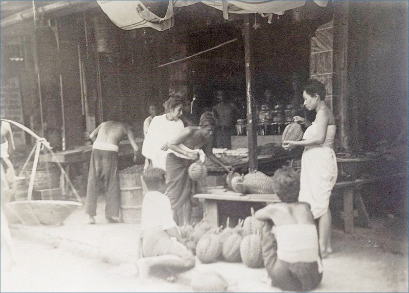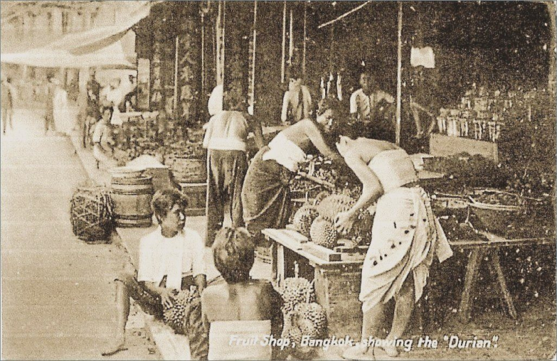 แผงขายทุเรียน พศ.2442 เป็นภาพพิมพ์และภาพถ่าย เป็นเหตุการณ์ที่เกิดที่เดียวกัน