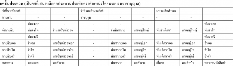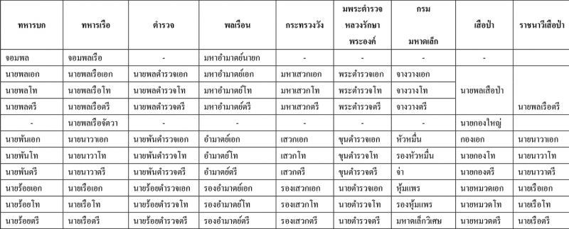 ตารางข้างล่างนี้เป็นยศชั้นสัญญาบัตร เป็นชั้นยศที่ได้รับพระราชทานสัญญาบัตรเป็นสำคัญ
