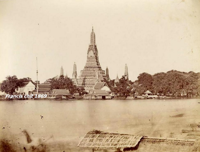วัดแจ้งโดย ฟรานซิส จิตร ถ่ายเมื่อปี 2412 รูปที่สองจะเห็นว่ามีการเปลี่ยนแปลงพื้นที่ของวังเดิมที่ติดกับวัด คงมีอาคารคอนกรีตเหลืออยู่ และสร้างอาคารด้านหน้าเพิ่มมา เกาะลอยหน้าวัดหายไปด้วย??? รูปหลังควรจะถ่ายหลังปี 2412 ไม่ช้ากว่า ปี2424 ที่มีการสร้างเก๋งจักรปีก