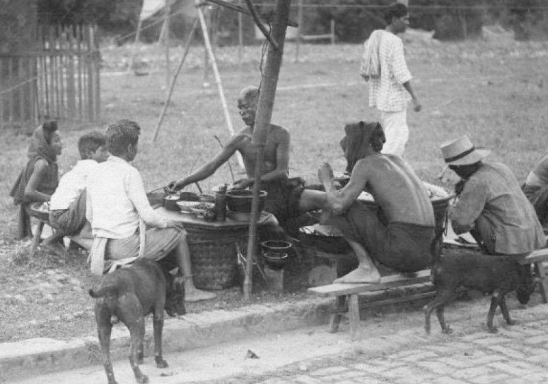 พ่อค้าใส่กางเกงจีน ไม่มีเสื้อ แต่งชุดธรรมดาในยุคนั้น