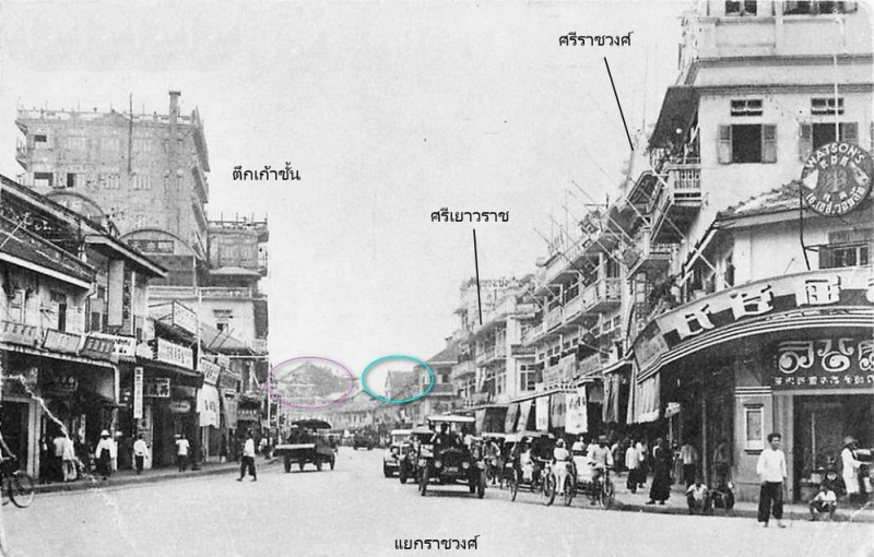 ถ้าจะให้เดาอาจจะเป็นถนนเยาวราชที่แถวสามแยก(ต้นประดู่)