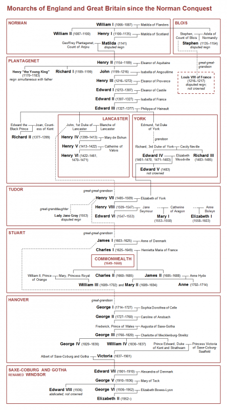 ราชวงส์ต่อมาคือราชวงศ์แฮนโนเวอร์ เป็นรุ่นโหลนของพระเจ้าเจมส์ที่ 1 กษัตริย์ต้นราชวงศ์สจ๊วตครับ และเพราะเป็นโปรแตสแตนท์เลยได้สิทธิสืบราชสมบัติ พระเจ้าเจมส์ที่ 1 ก็มีเชื้อสายสืบมาจากเฮนรี่ที่ 7 ที่สืบมาจากจอห์นแห่งก็อทอีกที เลยทำให้สายเลือดไม่บริสุทธิที่ช่วงใดช่วงหนึ่งที่ไม่รู้แน่ชัดในประวัติศาสตร์ครับ