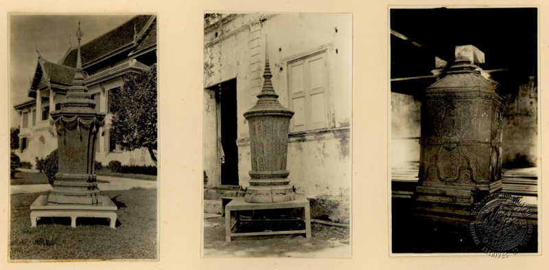 ภาพถ่ายเก่าโดยเดอร์หริง ซึ่งบรรยายใต้ภาพว่า โกศเจดีย์ วัดรามัญ