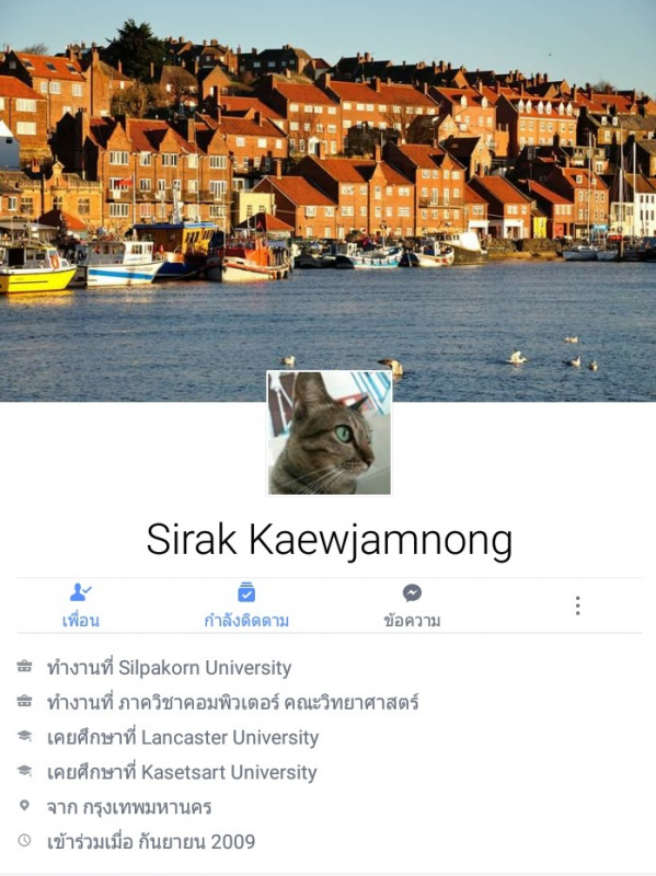 เมื่อวานตอนบ่ายๆ มีเพื่อนใน FB คนหนึ่งทักผมว่าได้พบกันที่ตลาดนางเลิ้ง ผมดูชื่อแล้วก็ เอ..ไม่คุ้นตาเท่าไหร่ พักที่ผ่านมามีคนขอ add friend ผมเยอะมาก ส่วนใหญ่ดูแล้วว่าไม่เป็นพวกขายของทางเน็ท ผมก็รับหมด ถ้าออกอาการถ่อยค่อยลบทิ้ง ส่วนคนนี้เป็นเพื่อนมานานไม่เคยเสวนากันเลย ชื่อเป็นคนหน้าเป็นแมวครับ หน้าตาคล้ายๆกับตัวที่ร้องเพลงของท่านอาจารย์เทาชมพู