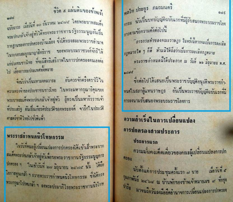 ข้อความที่ว่า “พระบาทสมเด็จพระปกเกล้าฯ ได้เรียกนายประยูร ภมรมนตรีไปพบที่วังไกลกังวล หัวหิน บอกว่าฉันเห็นว่าแกนายประยูร เคยเป็นมหาดเล็กของฉันมาตั้งแต่เด็ก ฉันจะช่วยไว้ชีวิตแก แต่แกต้องออกไปอยู่ที่ปีนังกับพระยามะโนฯ ฉันจะเลี้ยงดูส่งเสียเงินทอง ไม่ต้องเดือดร้อน เพราะถ้าแกอยู่กรุงเทพฯ ในเดือนตุลาคมนี้ เจ้าบวรเดชจะยกทัพหัวเมืองเข้ามาปราบคณะก่อการฯ จับตัดหัวให้หมด ในคำบอกเล่าของนายประยูร ภมรมนตรี ซึ่งเป็นผู้ก่อการฯ คนหนึ่งได้กราบทูลว่า ถ้าจะฆ่าผู้ก่อการฯ ทั้งหมด ก็ขอไม่ไปอยู่ปีนัง ขอตายอยู่ในเมืองไทย” นั้น