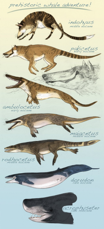 ตัวข้างล่างใน Jurassic World เป็นหนึ่งในบรรพบุรุษวาฬข้างบนนี้หรือเปล่าคะ หน้าตาคล้ายๆตัวที่สามกับสี่