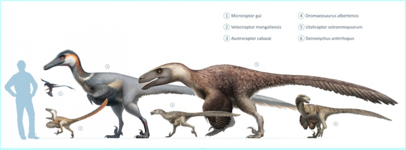 เปรียบเทียบขนาดของมนุษย์และไดโนเสาร์ในวงศ์ Dromaeosauridae
