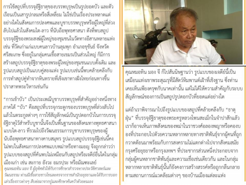 เป็นที่ทราบกันแล้วว่าสถูปทรงบัวนั้น ถึงพบว่าในเมืองไทยก็มี ไม่เฉพาะในเมืองลาว แต่ที่ลินซินกอง สถูปทรงกระบอกยอดบัวที่ว่าเป็นเพียงเครื่องหมายแสดงตำแหน่ง ส่วนอัฐิหรือพระอัฐิหรือพระบรมอัฐิที่เจออยู่ในสถูปองค์อื่นที่เพิ่งเห็นกันหลังเปิดหน้าดินแล้ว